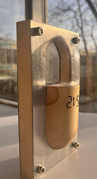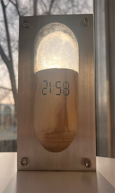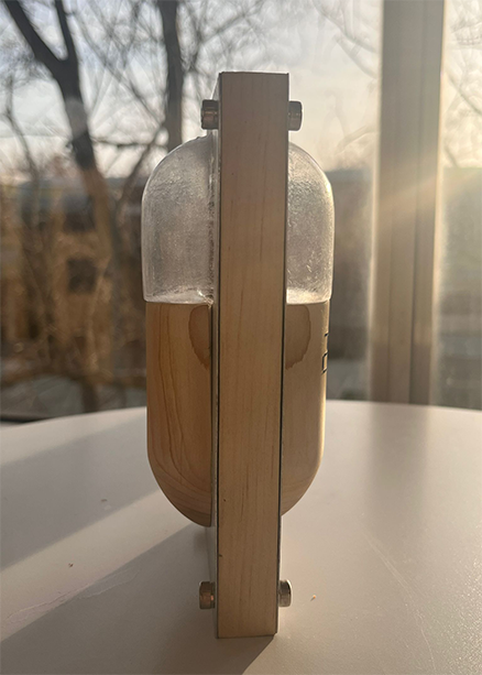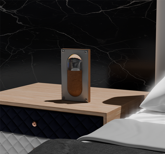 Pill Lamp: A harmonious fusion of wood, aluminum, and vacuum-formed plastic, inspired by the simplicity of a pill and crafted through perseverance and innovation.